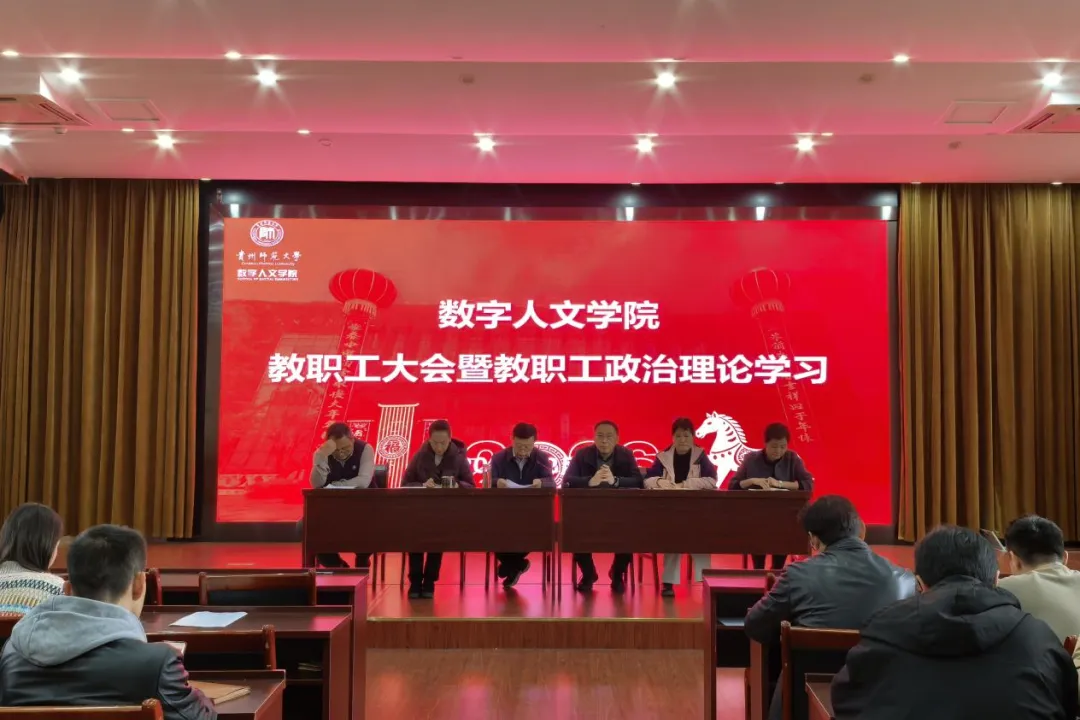 会议最后,陈辉林传达省委书记徐麟、省长李炳军在2月24日主持召开的贵州“新春第一会”和25日教育厅厅长陈云坤主持召开的全省教育工作会的会议精神,要求全面领会省委省政府对贵州高质量发展的新要求,贵州教育“质量攻坚年”的新部署,坚持以党建为引领,深化教育改革创新,做好学院“十五五”高质量发展规划,着力抓好春季新学期各项工作,凸显学院党建思政与学科建设特色,以奋进姿态交出一份师生满意、社会认可的答卷!