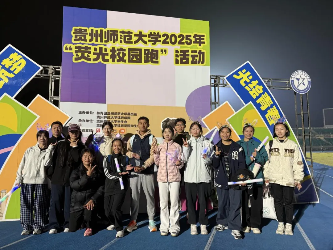 为响应国家“走下网络、走出宿舍、走向操场”的“三走”号召,10月25日,贵州师范大学2025年荧光校园跑活动在三号运动场拉开帷幕,我院学子凭借顽强的意志力和拼搏精神,一举斩获团体总分二等奖!