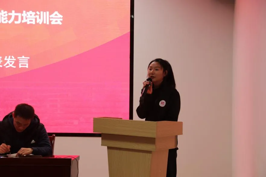 在培训环节,陈勇从角色认知与价值定位、履职尽责的核心能力、模范带头的实践路径、个人成长的赋能提升、行动计划与宣誓等五个方面进行系统讲解。他用丰富的案例和经验介绍学生干部如何提升工作能力、提高工作效力。他还指出作为学生干部,要有担当精神和高度负责的工作态度,要充分利用好课余时间完成工作任务,兼顾工作和学习,全面提升自身的综合素质,全心全意为同学服务。